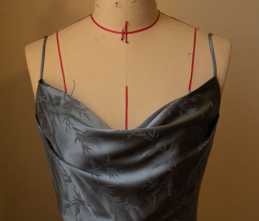 Dark Blue Organic Silk Cowl Neck Slip Dress
