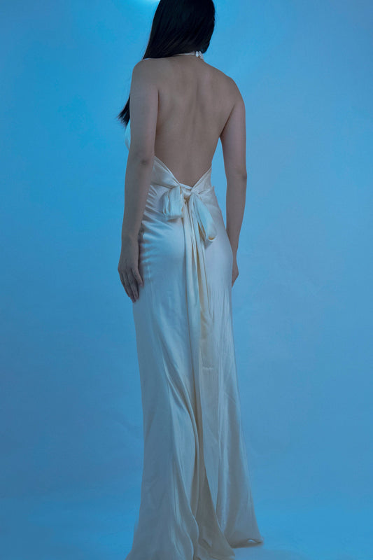 100% Mulberry Silk Jewel Halter Neck Dress Gown