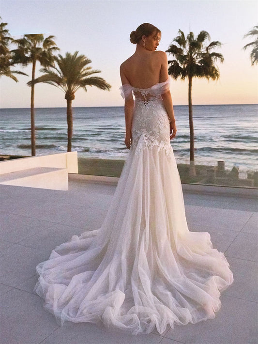 Beach Sweetheart Wedding Dresses For Women 2025 Bride Modern Lace A-LineAppliques Bridal Gown Off The Shoulder Robe De Mariée