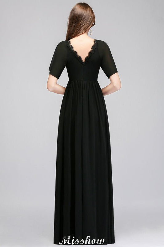 Black Chiffon A-line Bridesmaid Dress V-Neck Floor Length