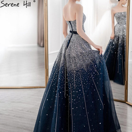 Blue Luxury Strapless Evening Dresses Gowns 2025 Beaded Bling A-Line Luxury For Women Party LA71157