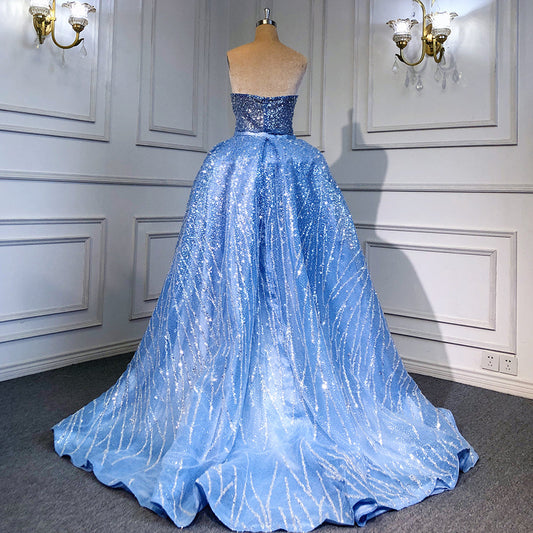 Blue Mermaid Detachable Skirt Evening Dresses Gowns 2025 Beaded Luxury Elegant For Women Party LA71179