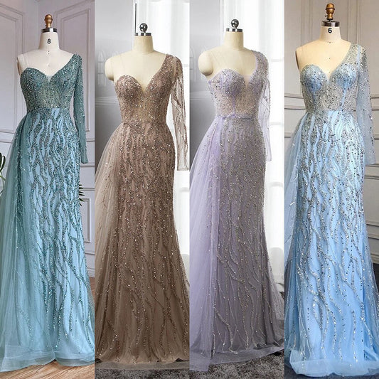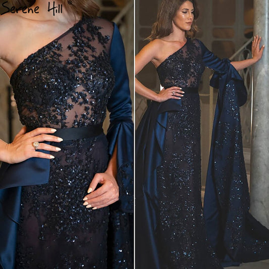 Blue Mermaid Sexy Elegant One Shoulder Evening Dresses Gowns Beaded Luxury 2025 For Women Party LA71629