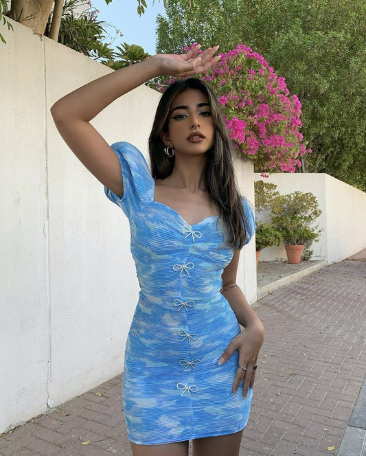 Blue Tie-dye Bodycon Dress Chic Homecoming Dress Y2687