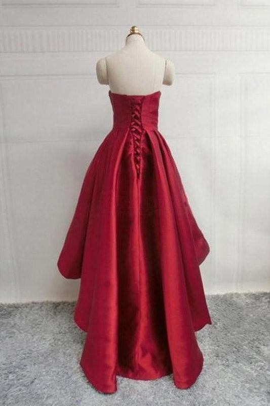Burgundy Sweetheart Satin High Low Homecoming Dresses Short Prom Dress PD303