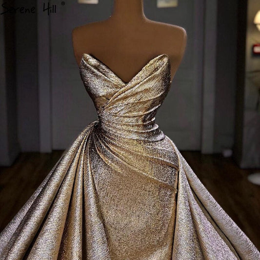 Champagne Mermaid Luxury Evening Dresses Gowns 2025 Elegant With Overskirt For Women Party LA71404