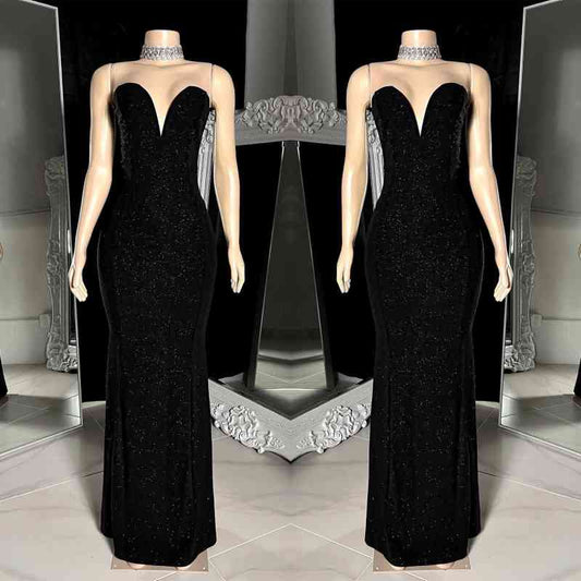 Charming Long Black V-neck Sleeveless Mermaid Prom Dress WIth Beading