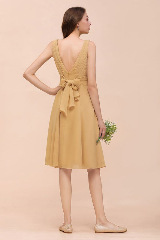 Chiffon Mini Golden Bridesmaid Dress Daily Casual Dress Sleeveless V-neck