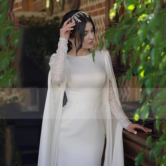 Classic Satin Lace A Line Wedding Dress For Woman 2025 O Neck Long Sleeve With Jacket Party Dresses Simple Elegant White Robe