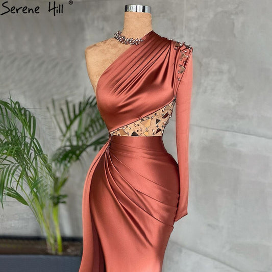 Coffee Mermaid High Split Satin Evening Dresses Gowns 2025 Elegant One Shoulder For Women Party LA71285