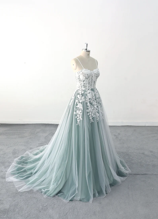 Corset Bodice Spaghetti Straps A Line Lace Wedding Dress Bridal Gown WD651