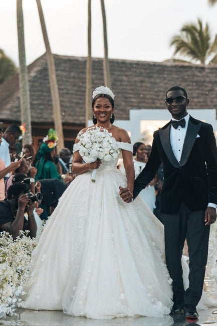 Designer Princess Long White Off-the-shoulder Glitter A-line Wedding Dresses