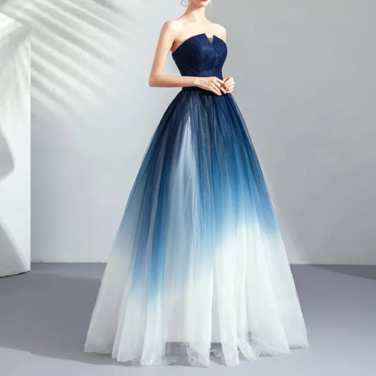 Dream Starry Sky Gradient Blue Wedding Dresses for Women Strapless Elegant Party Dress Summer Back Cross Lace Up Vestidos