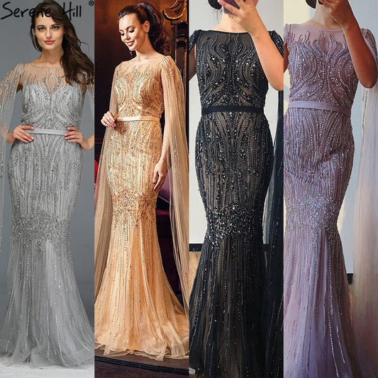 Dubai Silver Mermaid Gold Evening Gowns Luxury Beaded Tassel Spaghetti Strap Party Drsses For Women 2025 LA72280
