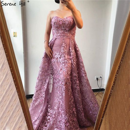 Dubai Pink Strapless Sexy Lace Fromal Dresses 2025 Mermaid Off Shoulder Crystal Evening Gowns Real Photo LA70186