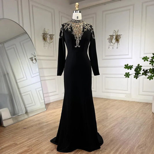 Dubai Satin Mermaid Beaded Luxury Arabic Evening Dresses Gowns 2025 for Women Wedding Party LA72354