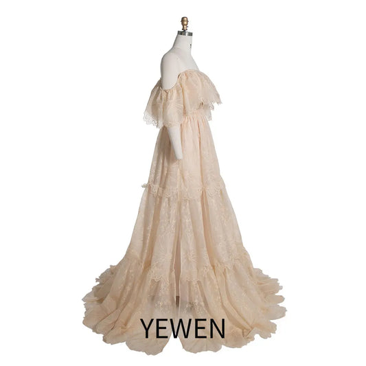 Elegance Off Shoulder Lace Boho Dress Maternity Photo Shoot Dress SY240067