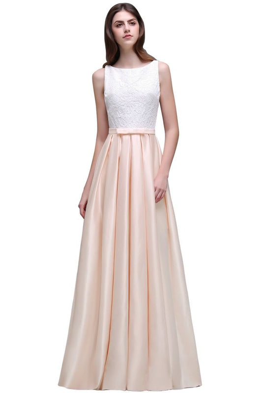 Edgar | Strapless White Satin A-line Long Formal Dress with Bow