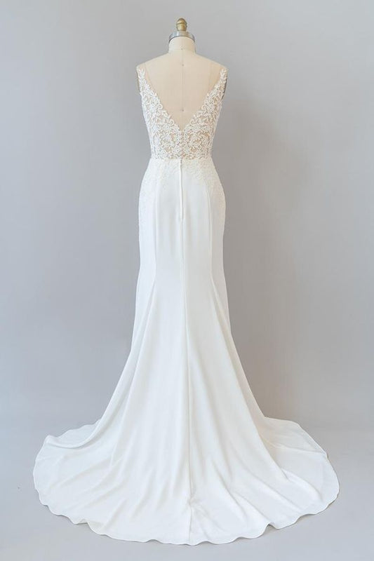 Elegant Long Mermaid V-neck Lace Backless Wedding Dress