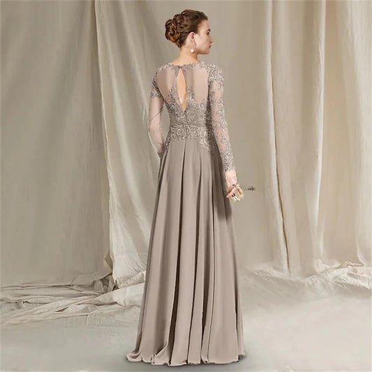 Elegant Mother Of The Bride Dress Long Sleeves Lace Chiffon A Line Summer Wedding Guest Dresses Mother Party Gown Sweep Train