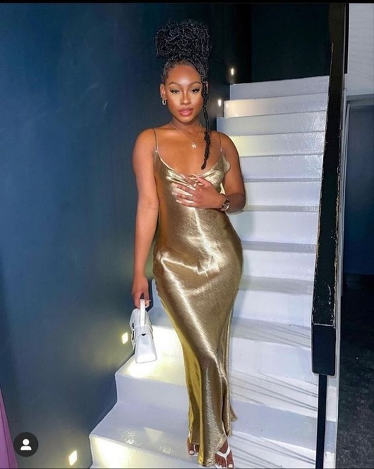 Elegant Sleeveless Aline Evening Swing Dress Bright Silk V-Neck Party Dress