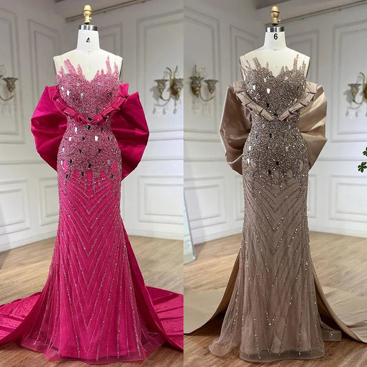 Fuchsia Elegant Mermaid Pearls Beaded Evening Dresses 2025 Luxury Dubai Formal Gowns for Women Party 2025 LA72263