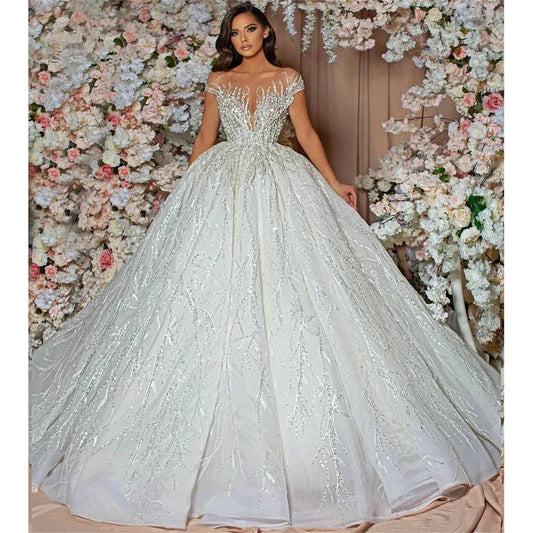 Gorgeous Sequins Ball Wedding Dresses Sweetheart Short Sleeves Lace Floor Length Custom Made Bridal Gowns Robe De Mariee 2025