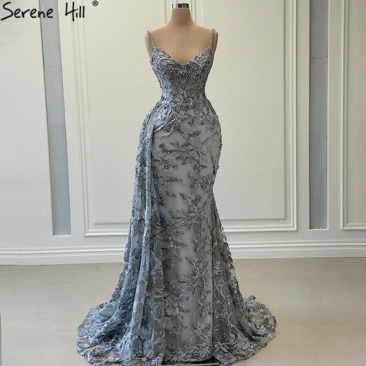 Grey Mermaid Spaghetti Strap Luxury Beaded Elegant Evening Dresses Gowns 2025 For Woman Wedding Party LA71650