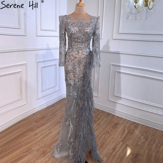 Grey Mermaid Luxury Evening Dresses Gowns 2025 Feather Beaded Elegant For Women Party LA71174