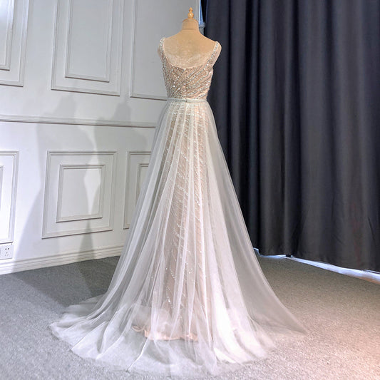 Grey Nude Elegant Mermaid Detachable Skirt Evening Dress Dress 2025 Ladies Beaded Luxury Party LA71380L
