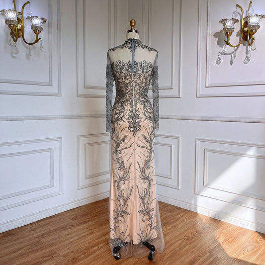 Grey Nude Elegant Mermaid Sexy Lace Beaded Luxury Evening Dresses Gowns For Women Arabic Party 2025 LA71837