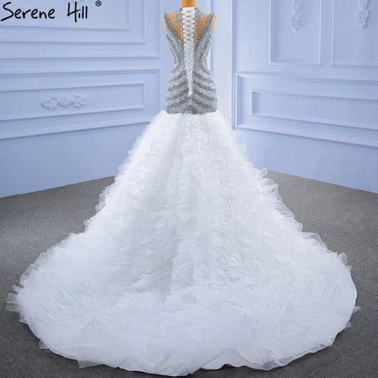 Grey White Mermaid Wedding Dresses 2025 Luxury Beaded Ruffles Elegant Bride Gowns HM67295 Custom Made