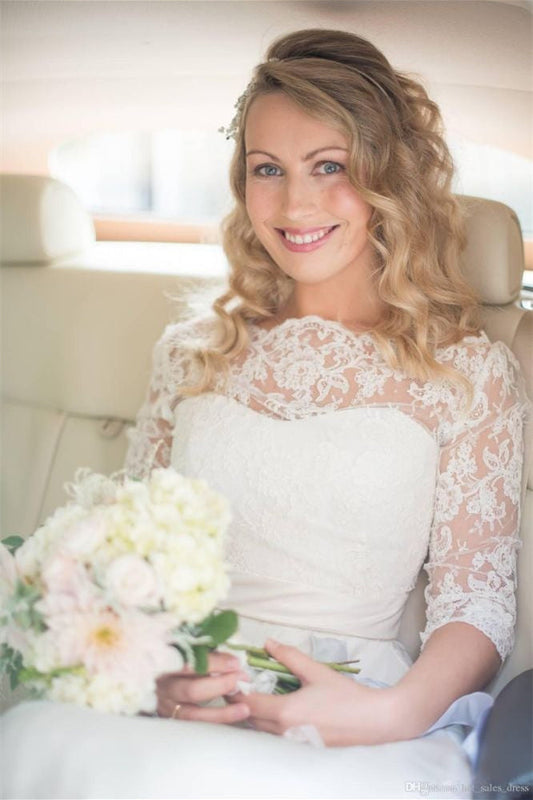 Half Sleeve Wedding Dresses A-line Elegant Simple Romantic Lace Bridal Gown WD424