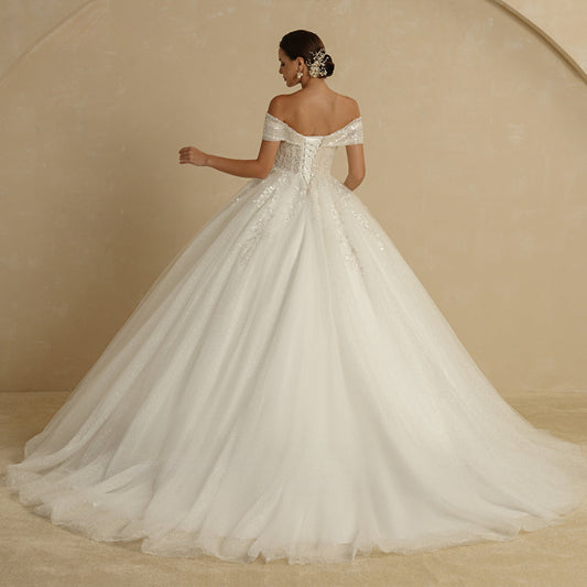Ivory Beading Princess Wedding Dresses For Bride Off The Shoulder Sleeveless Women Glitter Ball Bridal Gown Robes