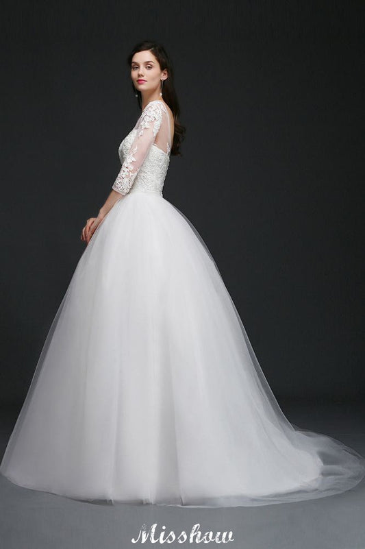 Lace Appliques Ball Gown Scoop Tulle Wedding Dress