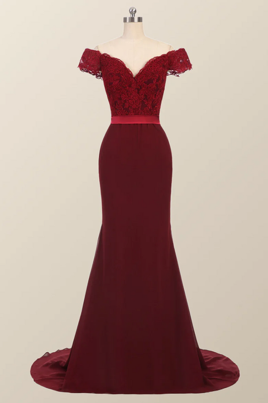 Lace Burgundy Bridesmaid Dress Off-the-Shoulder Mermaid Prom Dresses