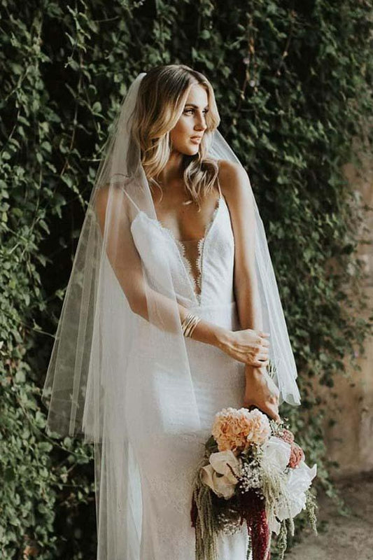 Mermaid Spaghetti Straps Low Cut Backless Lace Wedding Dress WD310