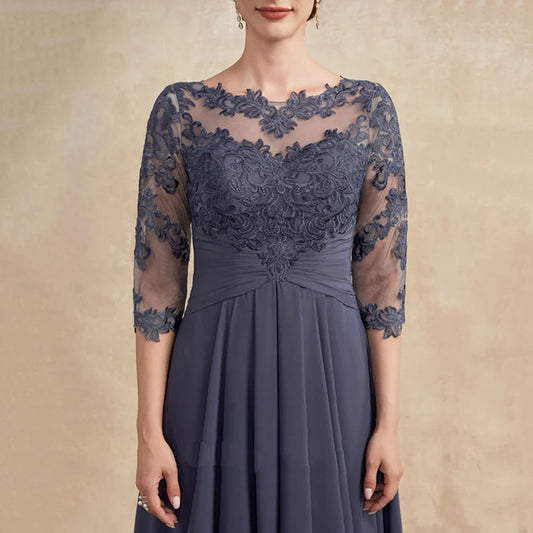 Mother Of The Bride Dresses Classic Scoop Neck Lace Appliques A-Line Floor-Length Dress Half Sleeve Chiffon Wedding Guest Gown