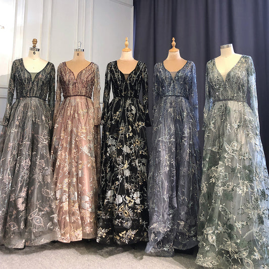 Muslim A Line Beaded Luxury Arabic Evening Dresses Gowns 2025 For Women Wedding Party LA71907