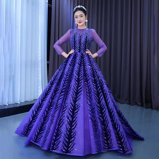 Muslim Blue Purple Luxury Beaded Appliques Lace Up Ball Gowns Wedding Dress 2025 High End Custom Made HM222204
