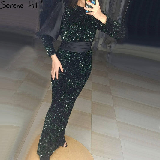 Muslim Green Mermaid With Train Sparkle Elegant Luxury Long Sleeves For Women Party 2025 LA71019