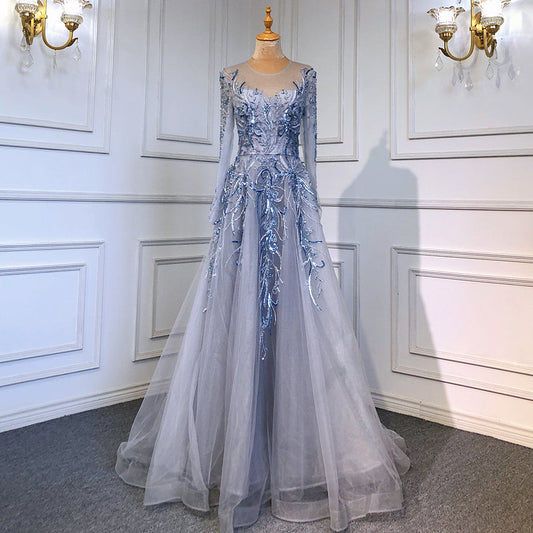 Muslim Mint Over Skirt A Line Beaded Luxury Dubai Long Evening Dresses Gowns 2025 For Women Wedding Party LA71924