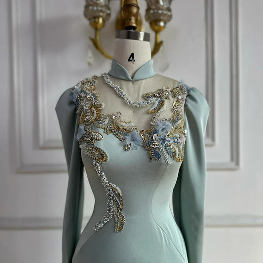 Muslim Mint Mermaid Beaded Satin Evening Dress Gown with Corset for Formal Occasion LA72797C 2025