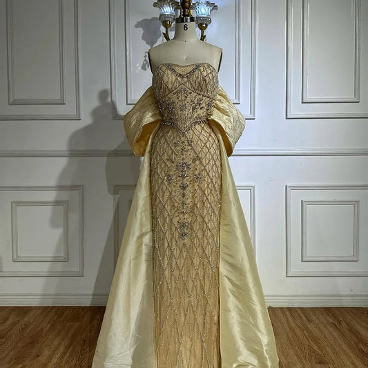 Nude Beaded Mermaid Evening Gown Off Shoulder Shawl Crystal Detailing for Formal Occasion 2025 LA72819