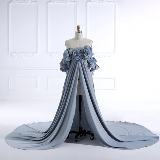 Off Shoulder Open Front Handmade 3D Flower Maternity Dress for Photo Shoot Baby Shower Pregnancy Photoshoot Dress Sunnderly