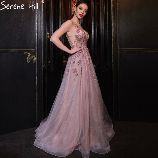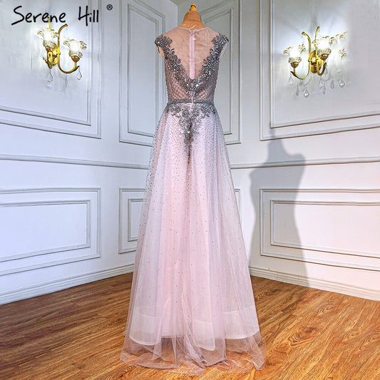 Pink A-Line Sexy Evening Dresses Gowns 2025 Elegant Beaded Lace Up For Women Party LA71318