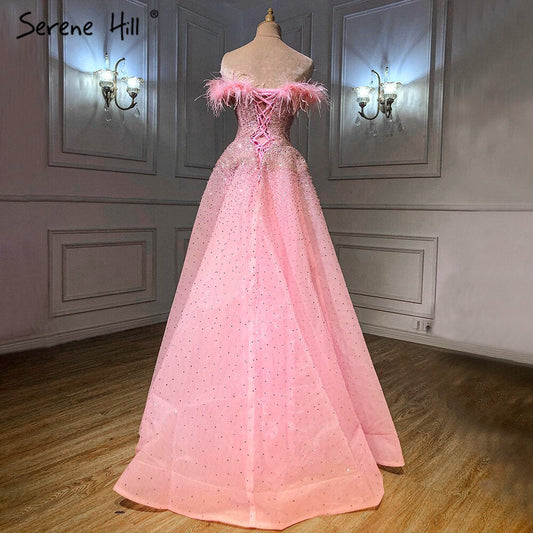 Pink A-Line Luxury Evening Dresses Gowns 2025 Feather Beaded For Women Wedding Party LA70901