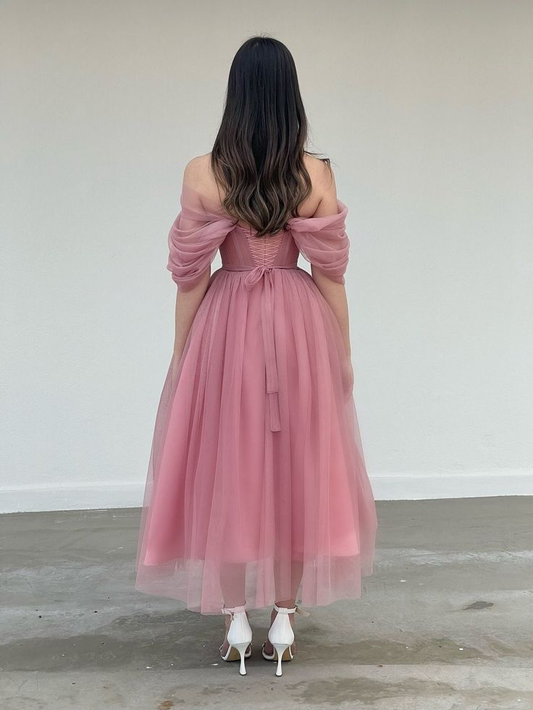 Powder Pink Tulle Dress Engagement Dress Corset Dress Cocktail Dress Evening Dress Y4775