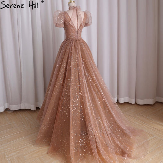 Rose Gold O-Neck Sequined Evening Dresses 2025 A-Line Latest Design Sexy Sparkle Formal Dress LA60976
