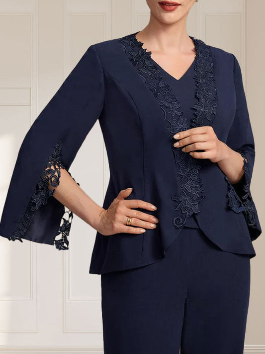 Separates Jumpsuit/Pantsuit V-Neck Floor-Length Chiffon Mother of the Bride Dress